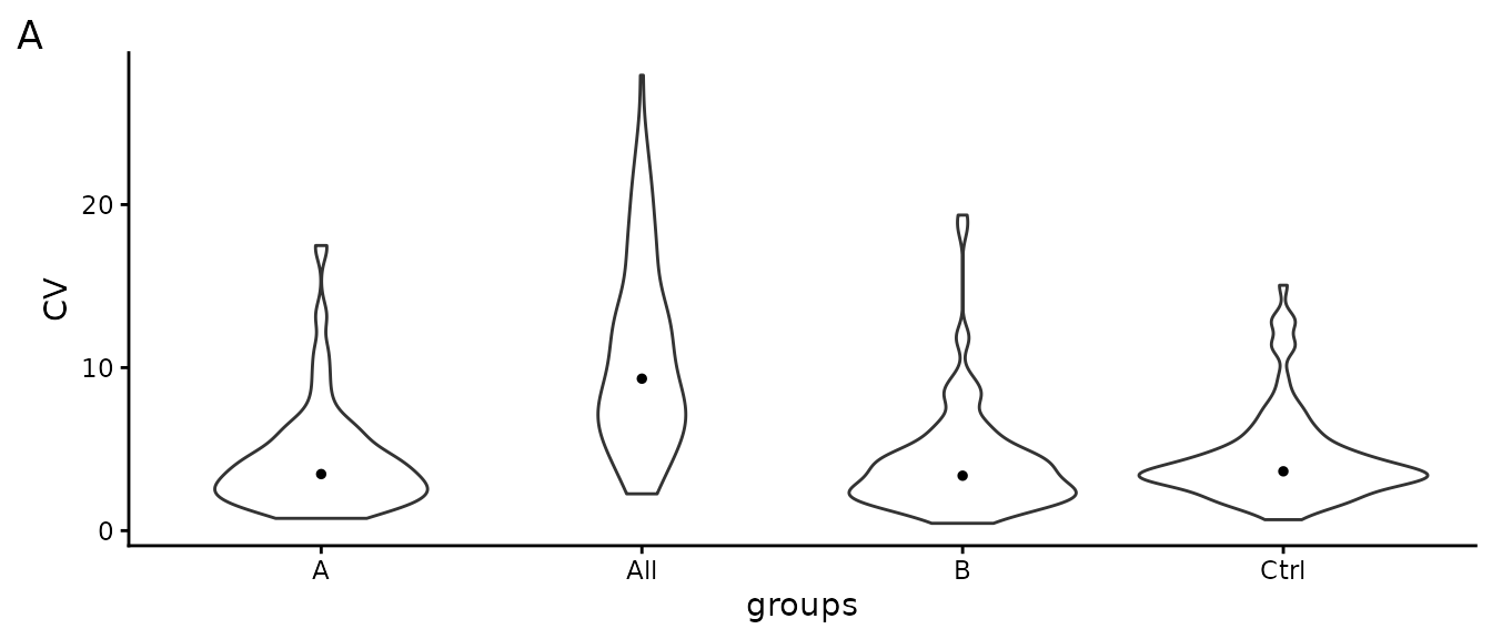 Table @ref(tab:CVtable) shows the median CV of all groups and across all samples (all).