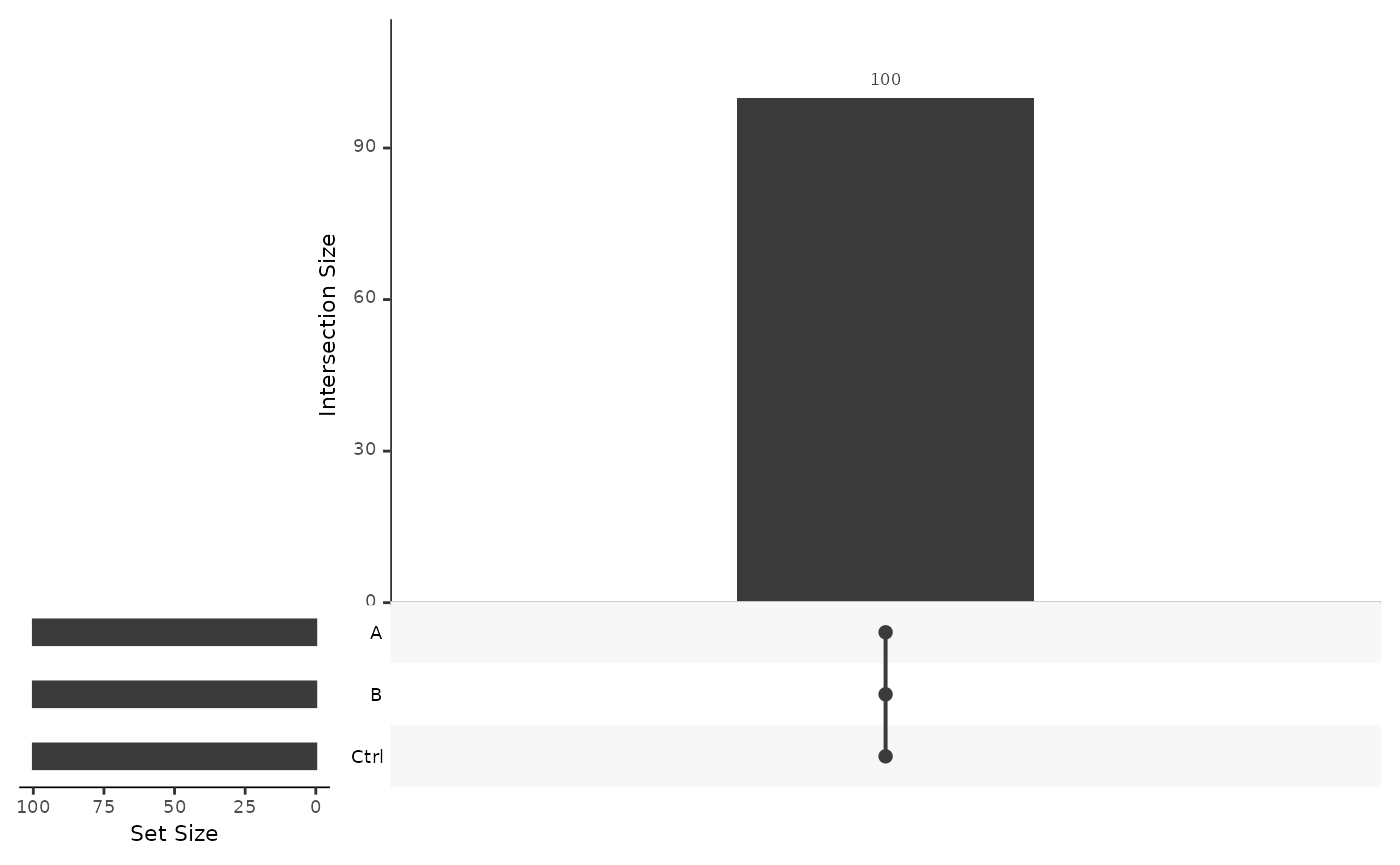 Using Figure @ref(fig:vennProteins) we examine if we see the same proteins in each group. We say a protein is unobserved in the group if it is absent in all samples and is present otherwise. A significant overlap among groups allows more precise estimation of the protein abundance differences between the groups.