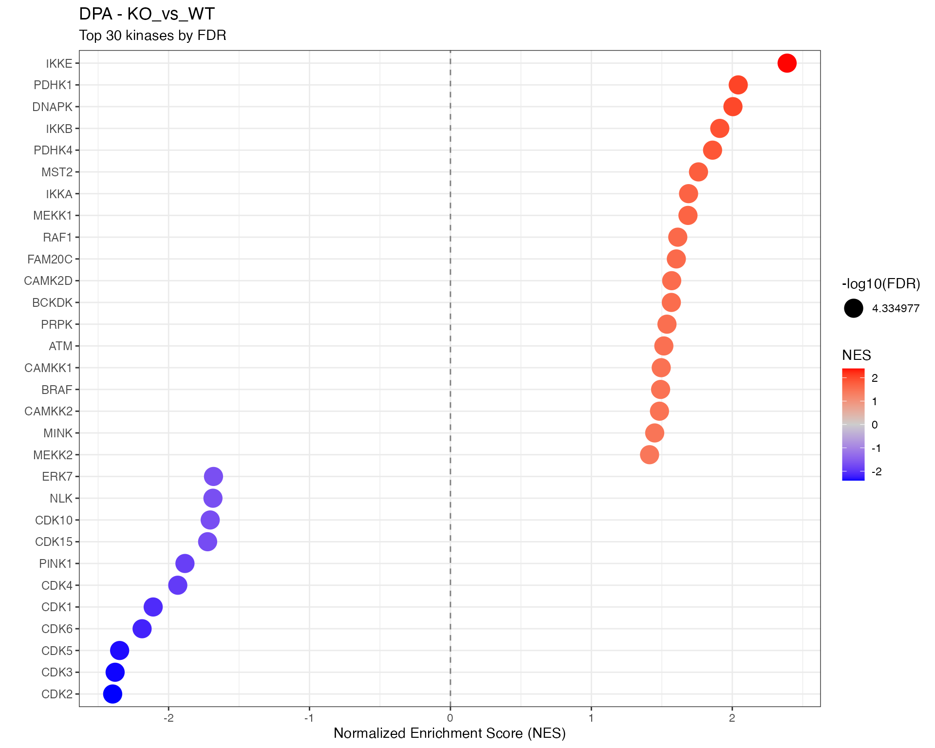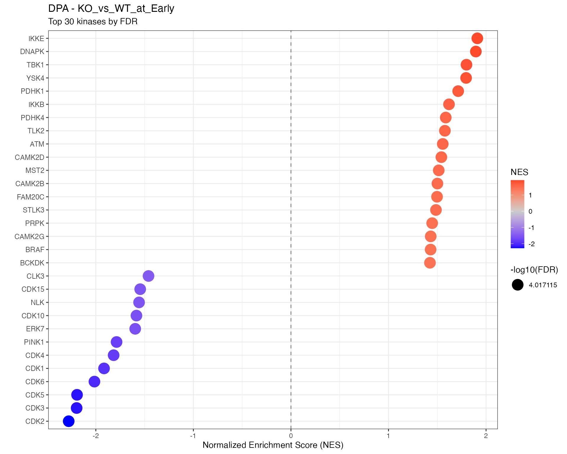 select(kinase, NES, pvalue, FDR, n_substrates = size) |>