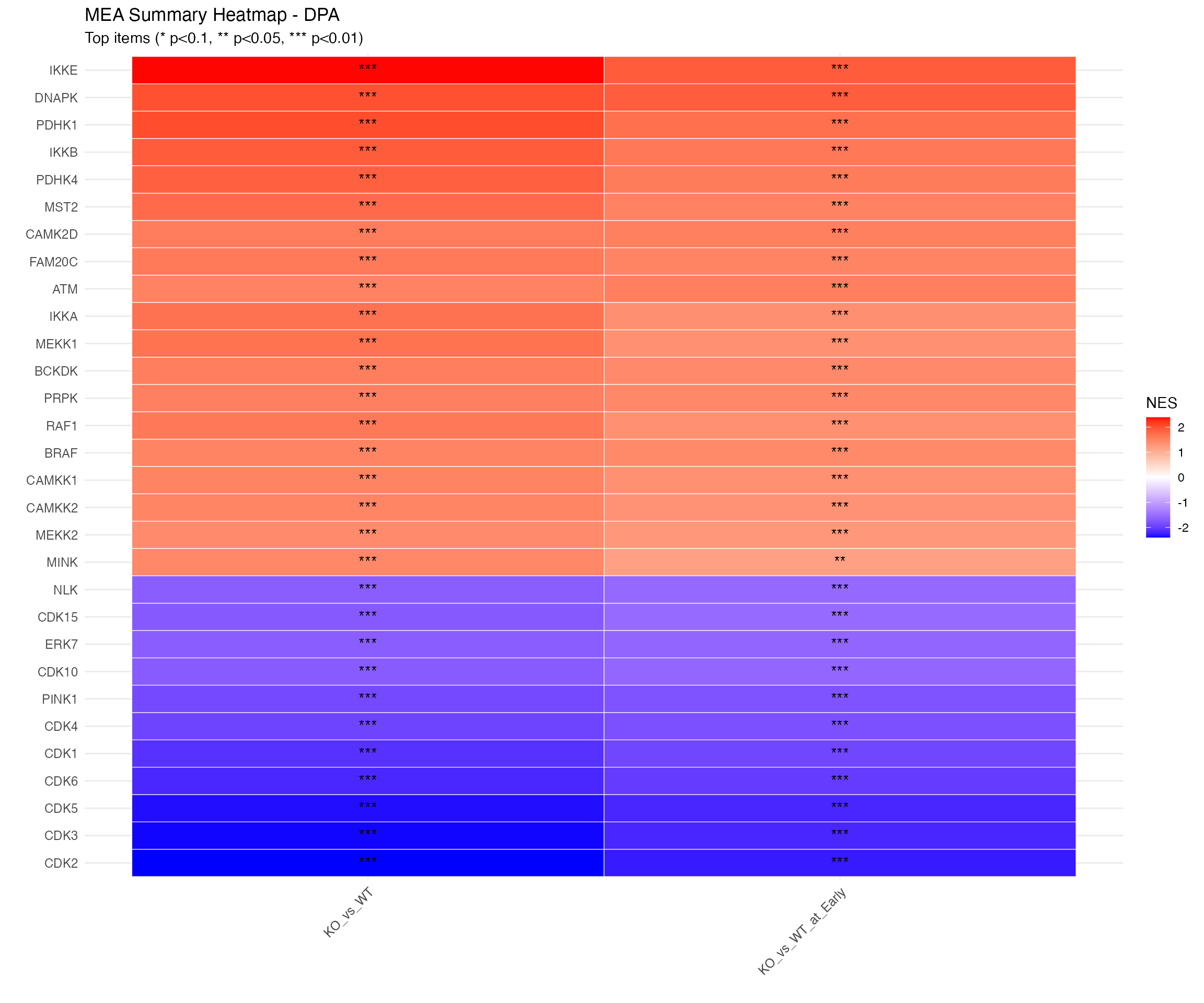 Motif Enrichment Analysis (MEA) results for DPA analysis using the kinase-library package.